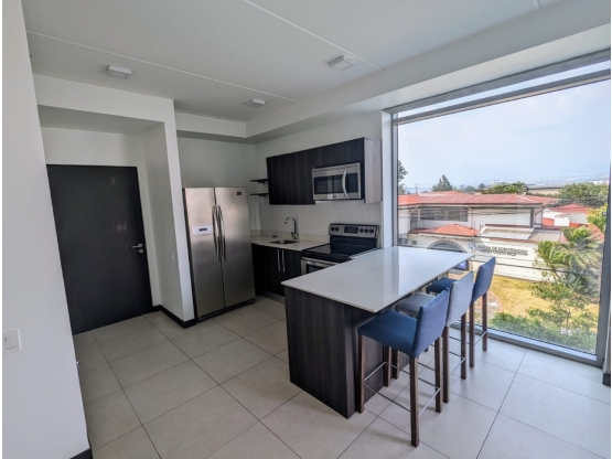 El apartamento cuenta con línea blanca (Refri, Microondas, Cocina, Centro de Lavado), Sofa de sala y 3 bancos para el desayunador.