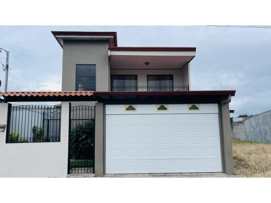 Ubicada en el Residencial Rincón Real, Etapa 4, en Dulce Nombre de Cartago, esta elegante propiedad combina diseño contemporáneo, confort y una excelente ubicación en un ambiente seguro y familiar. Características principales Terreno: 183 m² Construcción: 160 m² Año: 2020 Niveles: 2 Parqueo: Cochera techada para 2 vehículos grandes, con portón eléctrico Distribución y acabados 3 amplias habitaciones, incluyendo un dormitorio principal con baño privado y walk-in closet 3.5 baños con acabados modernos Sala y comedor integrados, con excelente iluminación natural Cocina en melamina con sobres de granito, elegante y funcional Sala de TV en la segunda planta Balcón con vista al residencial Cuarto de lavandería y bodega Cielos en PVC y gypsum Pisos en porcelanato Calentador de agua Estructura en bloque de concreto y divisiones internas en Durock Áreas externas Jardín y patio trasero, ideal para actividades al aire libre o para futuras ampliaciones Juegos infantiles y un ambiente seguro y tranquilo, perfecto para familias